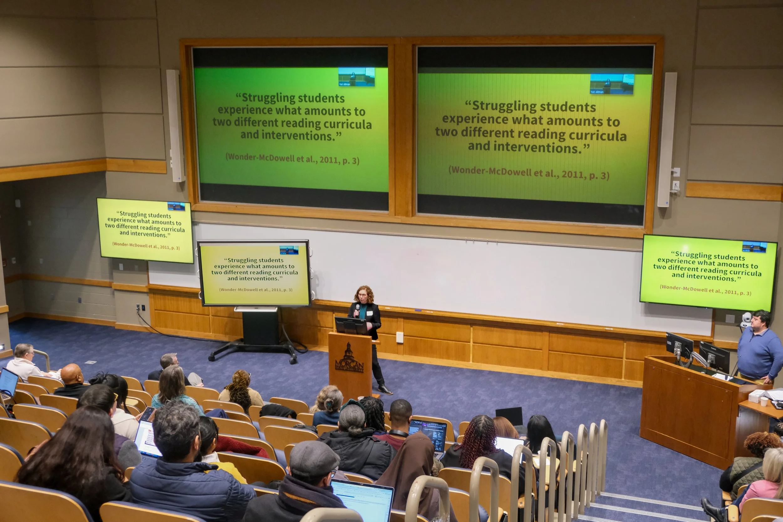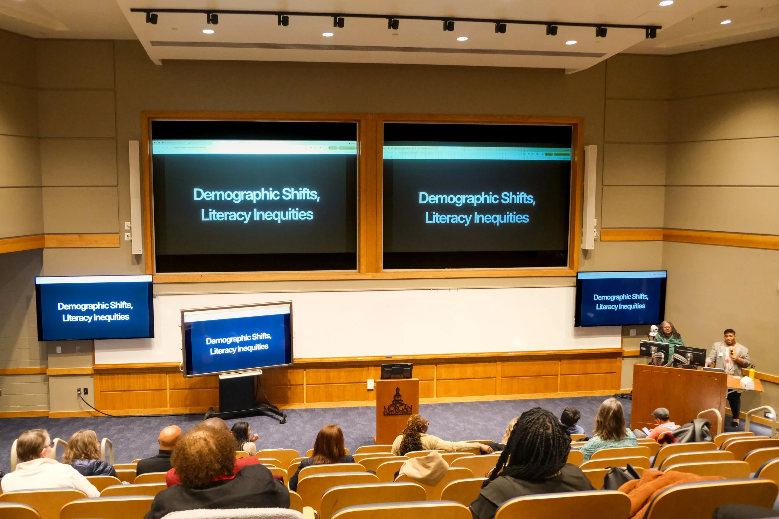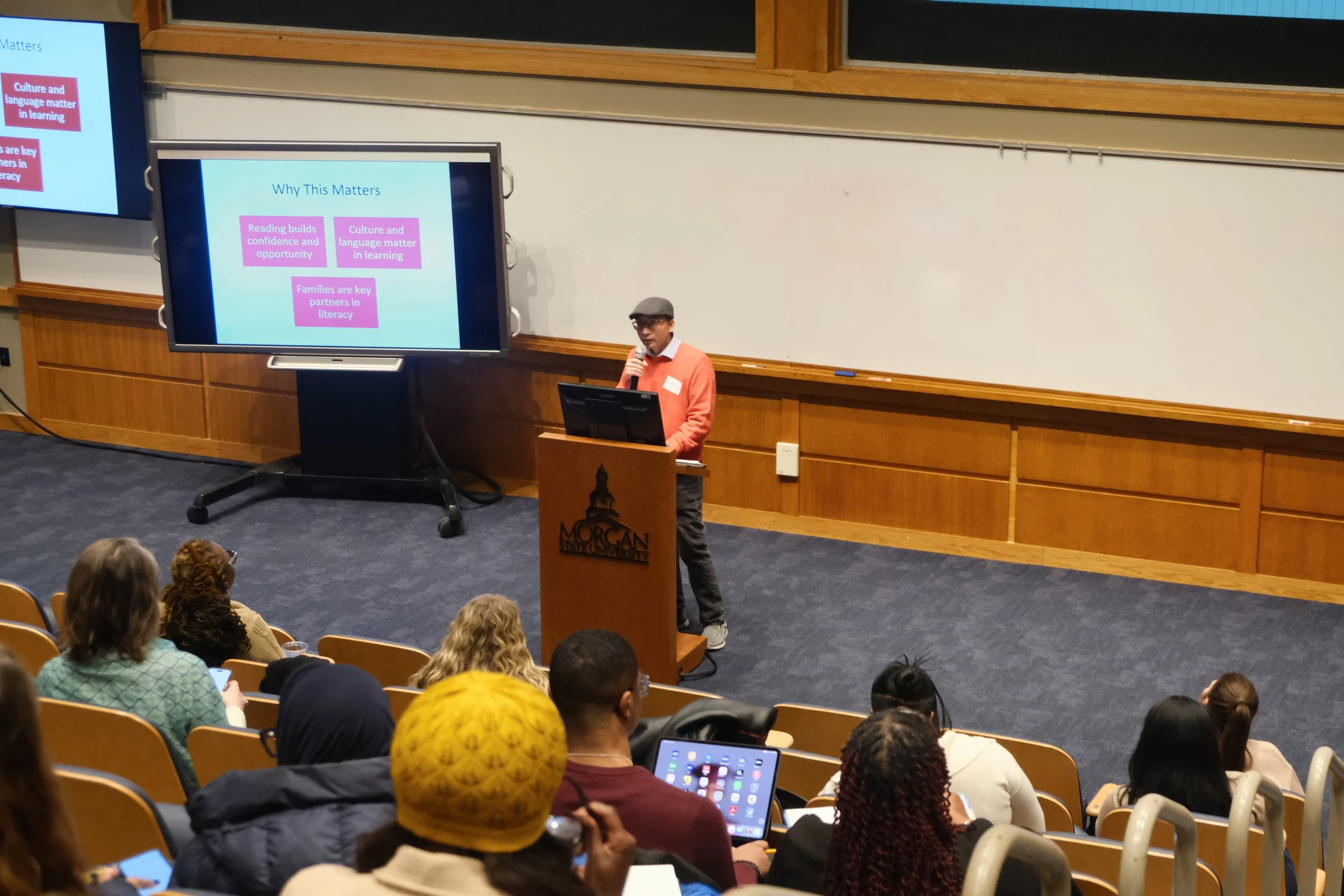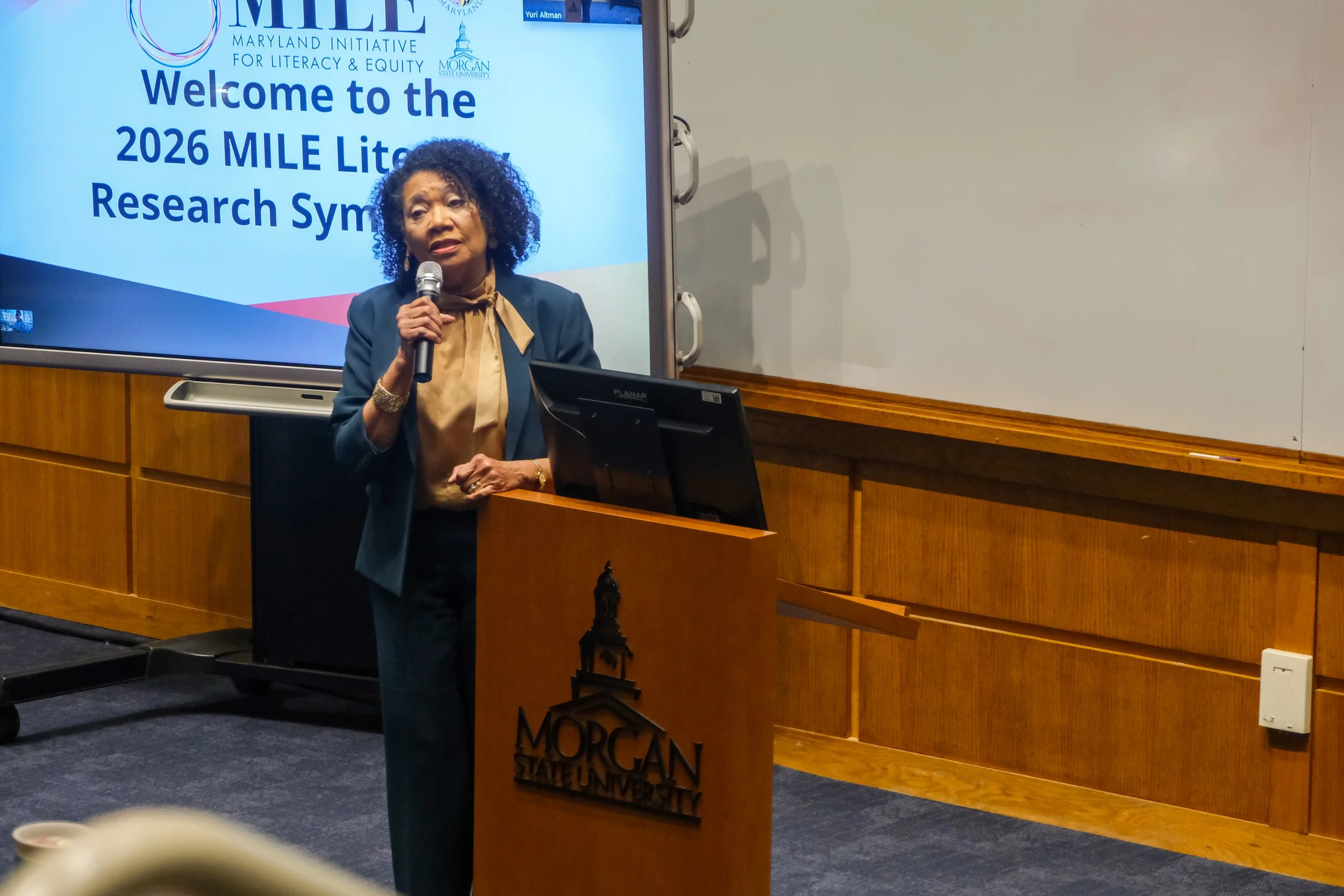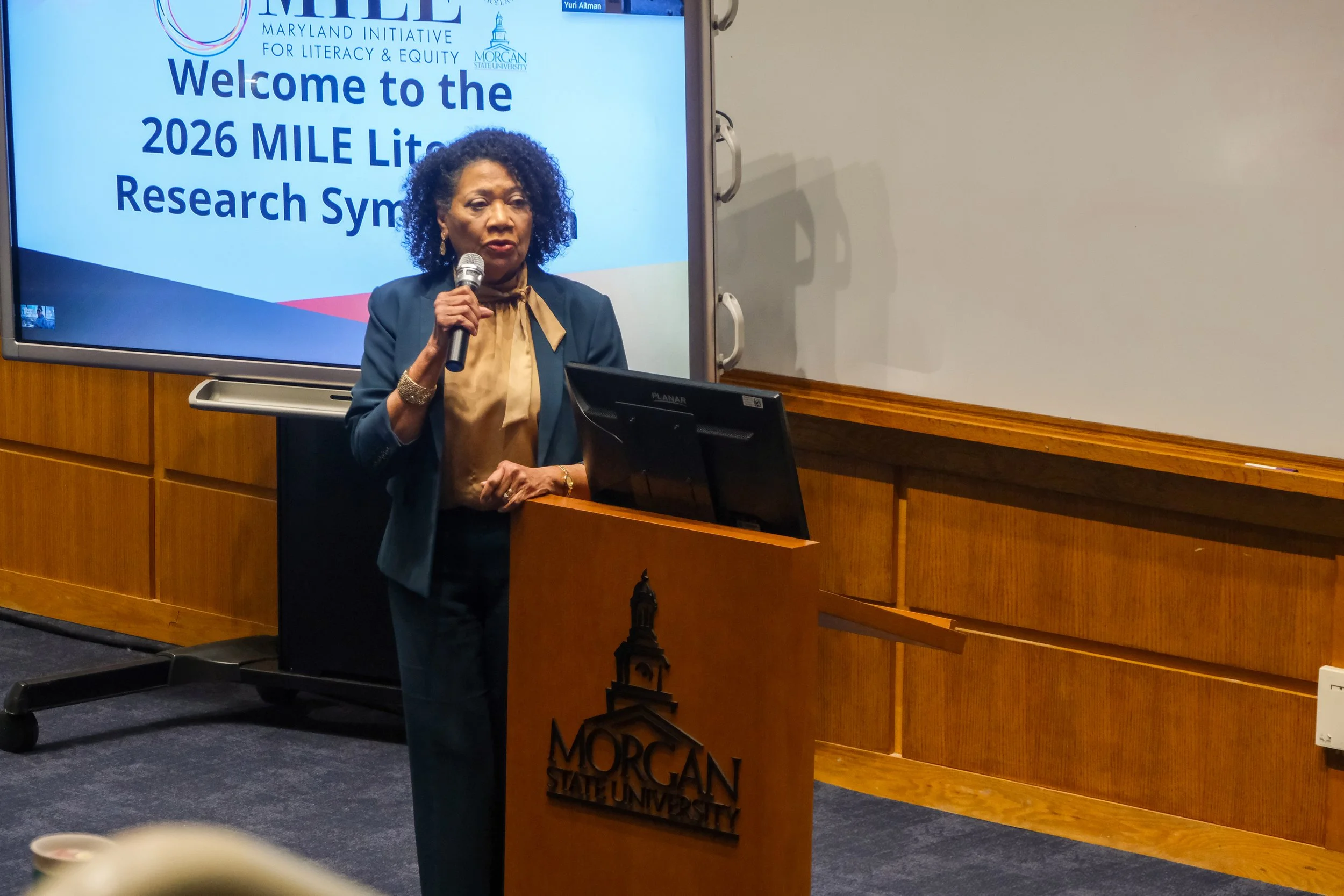 On February 13th, 2026, MILE hosted the second Literacy Research Symposium. The event hosted 75 attendees from Morgan State University, University of Maryland and community partners at Morgan State University’s Schaeffer Building. The agenda showcased research updates from the 2025 Seed Grant winners, Dr. Bryan Best and Dr. Wang, Dr. Ortiz and Dai, and research proposal presentations from our newest graduate and faculty awardees:
